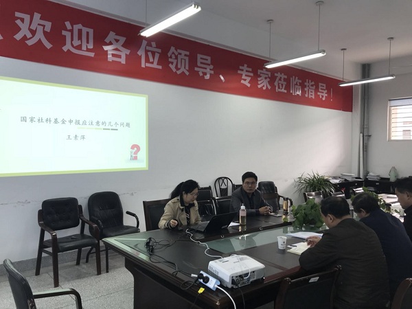 汇报会分二个阶段进行。第一阶段,王素萍教授从自己申报国家基金的一些经验入手,对于国家社科基金的申报进行具体指导。她从国家社会科学基金项目书撰写的一般思路和规律提出建议,强调选题要讲究高度、宽度和深度,论证过程要严格符合规范,既要紧紧围绕选题的关键问题展开,又要高屋建瓴,凸显新意、亮点。王教授的指导建议深入浅出,富有针对性、可操作性。教师们普遍感觉讲授内容实实在在,收获很大。第二阶段,今年准备申报者就自己的选题、撰写思路进行了简要的汇报,王教授针对选题进行了细心的指导。申报者就自己选题、写作过程中的问题及困惑向王教授请教,王教授热情地一一给予了解答。