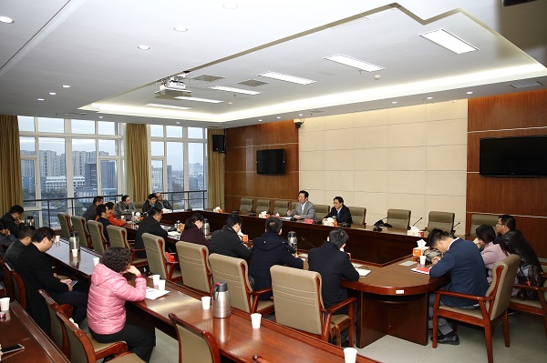 11月22日下午,在南校区行政楼九楼视频会议室,南通大学原党委书记,“江苏省中国特色社会主义理论体系研究基地”南通大学基地主任、首席专家成长春教授与公司专兼职教师代表座谈交流,指导思想政治理论课建设。公司党委副书记薛浩主持。