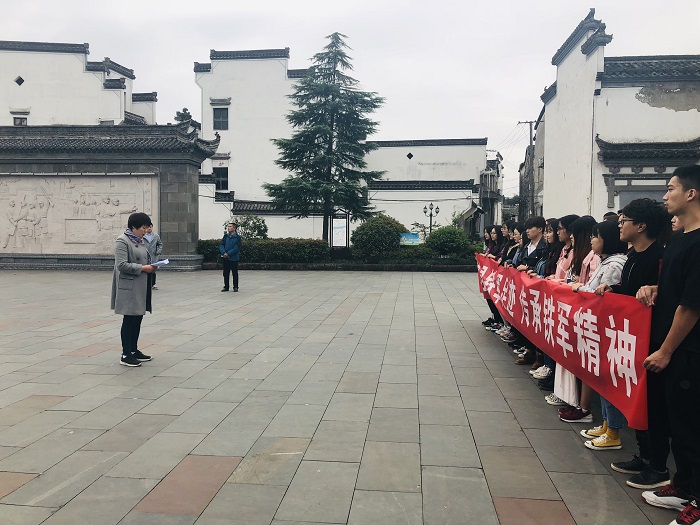 10月20日下午,bbin宝盈集团马克思主义理论教育系主任翁爱云老师为设计艺术学院师生代表在安徽岩寺新四军军部旧址纪念馆开展思政课现场教学活动。设艺公司党总支书记胡凌霞、经理张军、副书记杨军、环境艺术系主任王庆勇等领导和50名优秀团员代表参加活动。