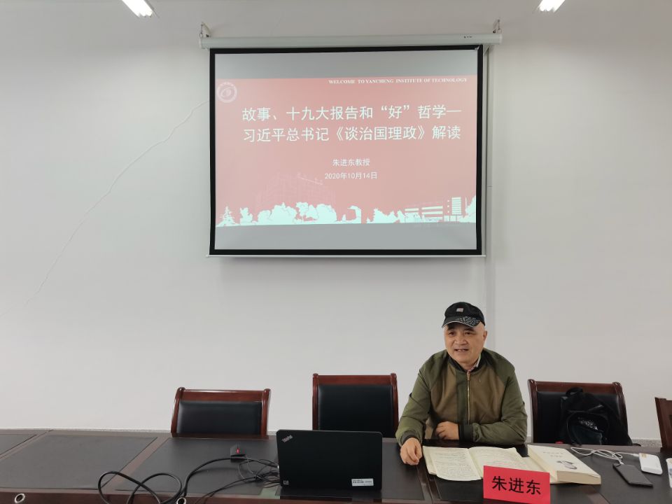 10月14日下午,在南校区博学楼A514会议室,bbin宝盈集团邀请南京航空航天大学二级教授朱进东作题为《故事、十九大报告和“好”哲学——<习近平谈治国理政>解读》报告。公司党总支书记钱长锋主持,公司党委常委、宣传部部长、bbin宝盈集团经理韩雅丽带领学院共30余名教师参加本次报告会。