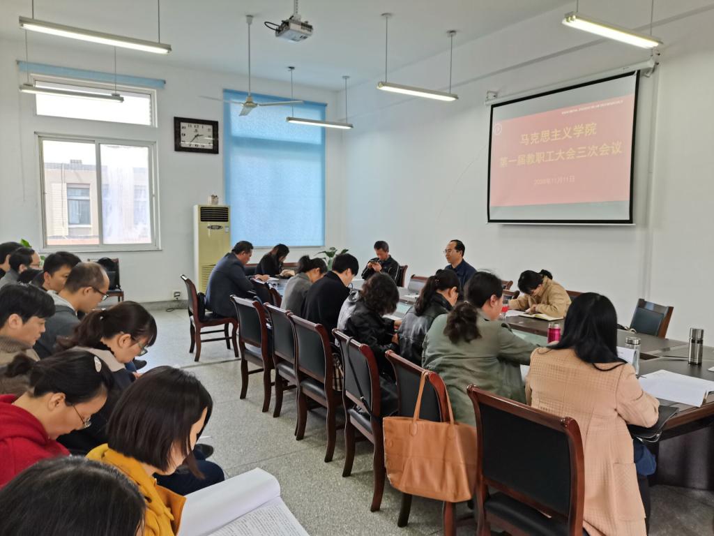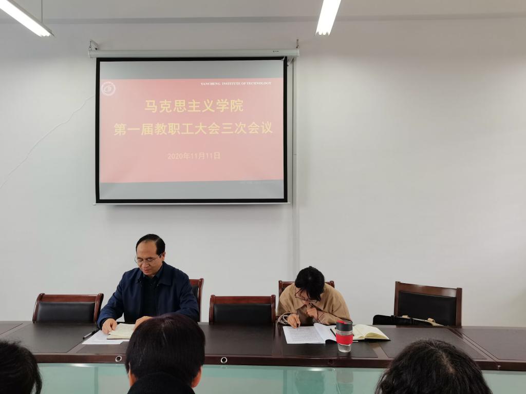 11月11日下午在南校区博学楼A514会议室,bbin宝盈集团举行第一届教职工大会三次会议。会议主要围绕bbin宝盈集团2020-2023年三年建设方案和2019年学院超科研、超教学酬金发放两项议题进行。公司党总支书记钱长锋主持,学院全体教职工约30人参加了会议。