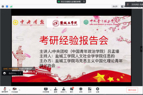 最后,马院的四位青年教师也分别结合自身考研、读研及毕业求职过程中的实际情况,针对同学们在线提出的问题一一进行了解析。整场分享会气氛轻松,讨论热烈,大家纷纷表示在今后的考研过程中要以优秀学长学姐为榜样,找准目标,坚定不移,早日实现考研的梦想。