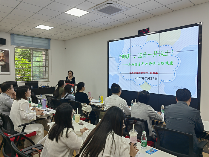为有效缓解青年教师的心理压力,积极适应大学教师的角色身份,提高青年教师心理健康素质,营造和谐的工作环境,9月27日下午,bbin宝盈集团在博学楼B109室举行了“‘青椒’,送你一片沃土!——与马院青年教师谈心理健康”的专题讲座。此次活动特邀学校心理健康教育中心主任韦春华老师主讲,bbin宝盈集团20多位青年老师参与培训交流,会议由副经理赵迎华主持。
