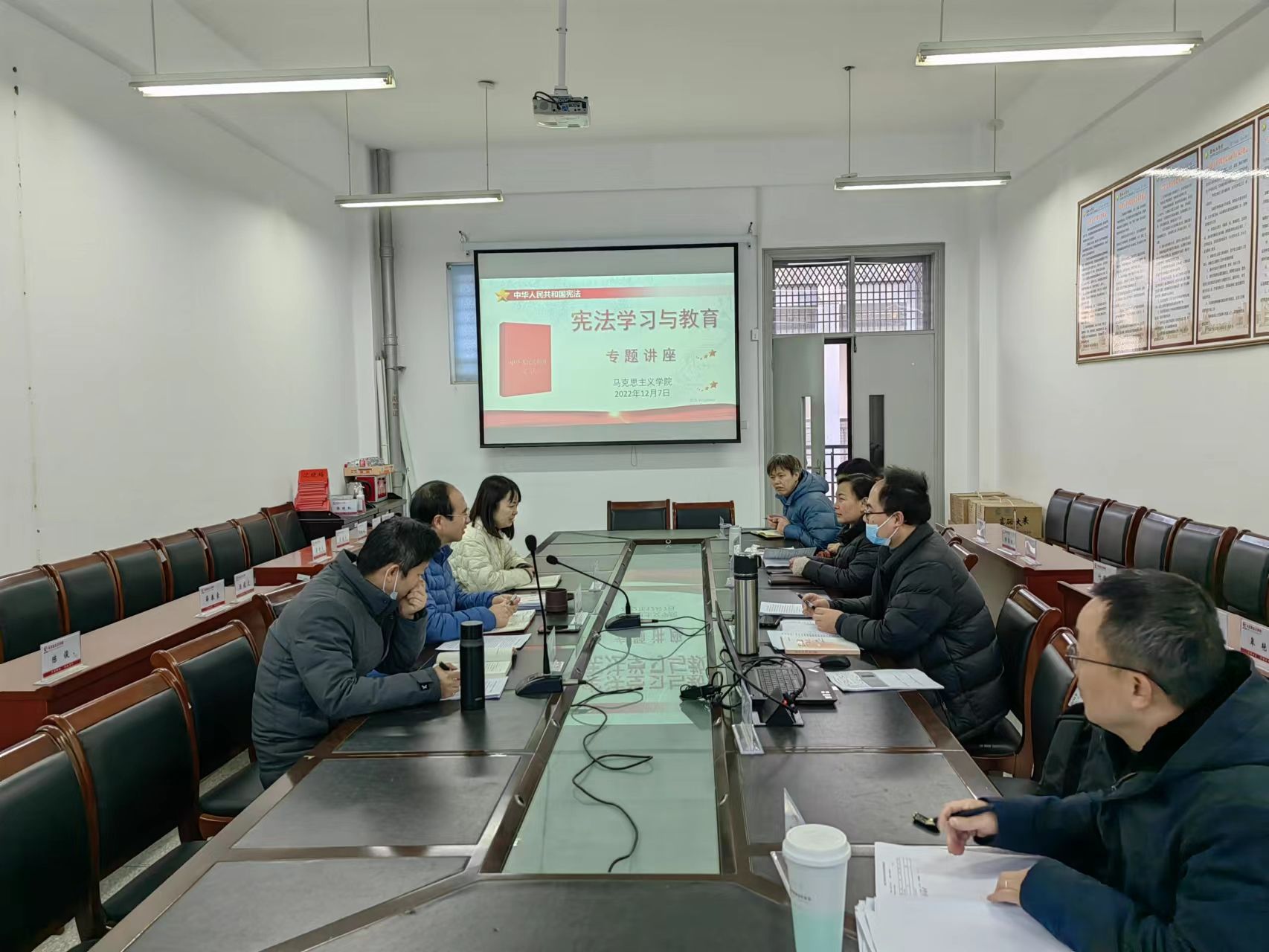 12月7日下午,马克思主义公司党总支在博学楼A514会议室,组织开展“学习宣传贯彻党的二十大精神,全面推动贯彻实施宪法”“宪法宣传周”系列活动。公司党总支书记、常务副经理钱长锋主持,全体教职工线上线下同步参加。