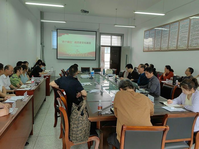 公司党总支宣传委员、经理助理马荣以“‘两个确立’的历史文化基因”为主题,讲授了中国正在推进中华民族伟大复兴,正在迈向社会主义现代化强国,就必须对传统治理体制与治理思想进行符合中国特色社会主义方向的现代化改造,就必须确立习近平同志党中央的核心、全党的核心地位,确立习近平新时代中国特色社会主义思想的指导地位,汇集全党共识,凝聚全党力量,迎接具有新的历史特点的伟大斗争。