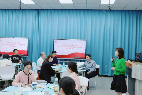 赵迎华对扬州大学bbin宝盈集团一行表示欢迎,强调了此次集体备课会的重要意义。徐俊介绍了扬州大学马院对“习近平新时代中国特色社会主义思想概论”课程设置情况,重点围绕如何打造高素质的教师队伍、打造本土化的特色实践教学、课程的总体设计和教学重点展开阐述。他提到,在团队力量方面,学院通过集体备课、增加培训机会、选派教师参加各级各类教学比赛、新教师举行教学汇报等多种形式打造了一支高水平的教学团队,为员工成长成才上好“关键一课”;在教学形式方面,通过专题教学、无缝对接实践教学、充分利用校内外教学资源、根据员工专业特点确定实践主题、研读心得体会、经典著作研读等方式梳理教学内容、优化教学案例、提高课堂时效。
