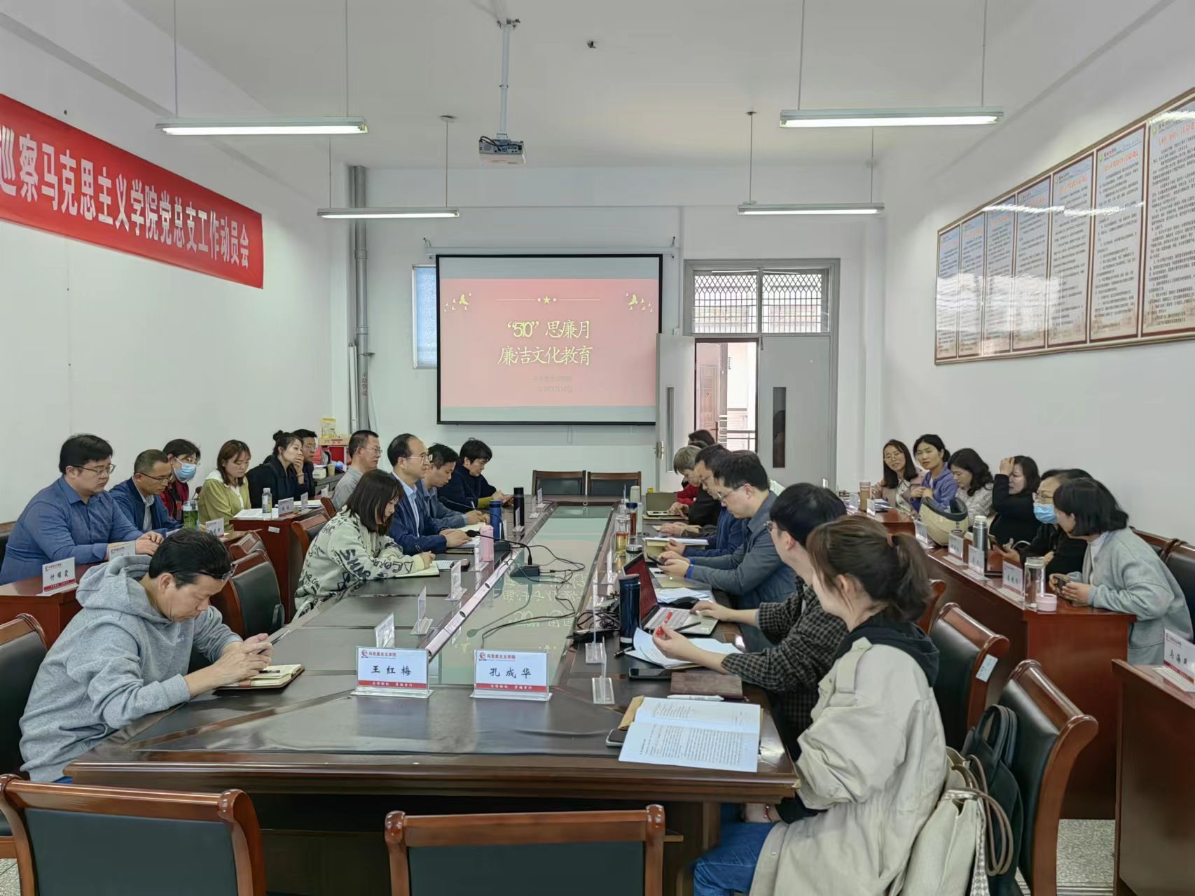 五月清风扬正气,为进一步加强党风廉政建设,引导全体党员坚守廉洁底线、提高拒腐防变能力,营造风清气正的政治生态和育人环境,确保公司稳健发展,5月10日下午,bbin宝盈集团在博学楼A514会议室开展“510”思廉月活动。公司党总支书记、常务副经理钱长锋主持,全体教职工参加。