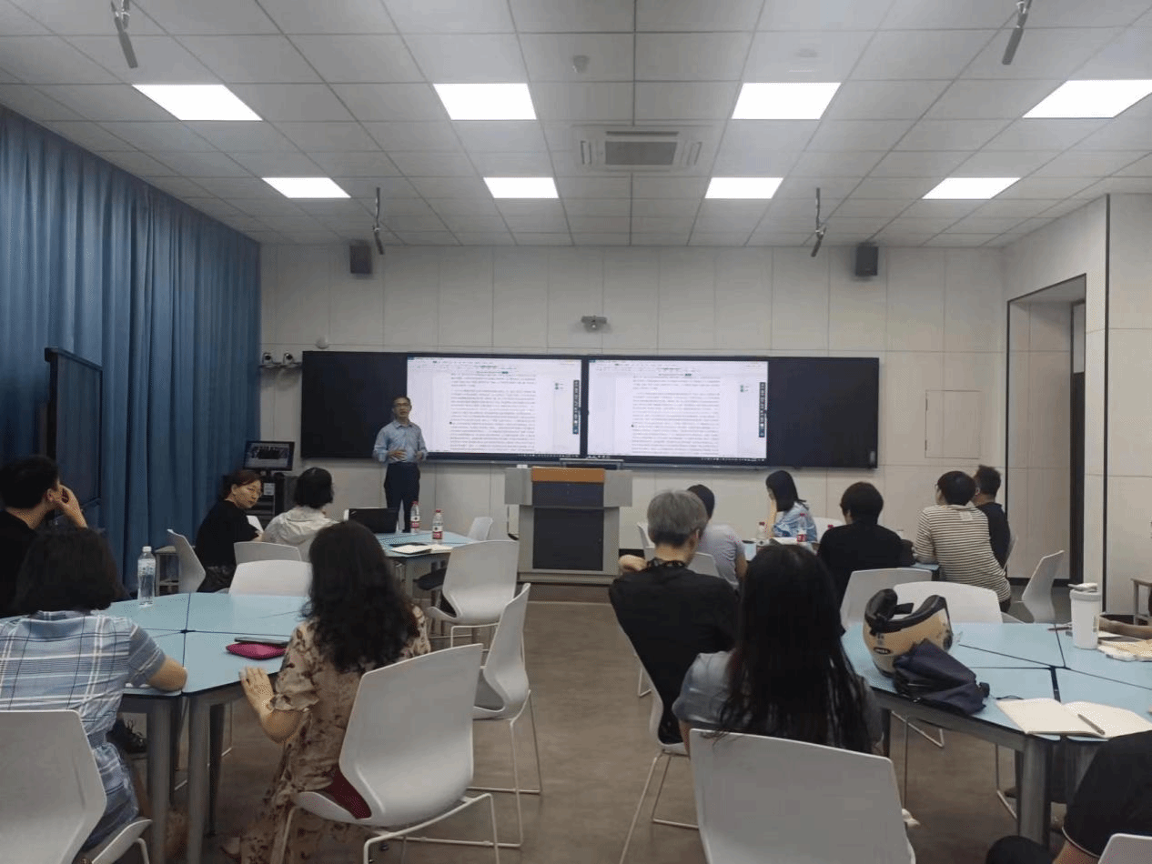 第二场活动于6月29日上午在博学楼D楼314多媒体教室举办,主要内容为:《马克思主义基本原理》课程教学专题研讨活动。活动由副经理赵迎华主持。刘华初教授,从《马克思主义基本原理》课程中摘取了“人工智能”这一专题,结合自己的论文《人工智能时代“马克思主义基本原理”课教学中的四个关键问题》开展专题学术报告。刘华初教授以人工智能问题为线索,探讨了四个问题,即,人工智能是否可以达到或超越人的意识,是否具有类人的主体性、价值与审美的判断,是否违背马克思主义的劳动价值论原理,它与当代资本主义的新发展是否违背“两个必然”等。在论证这几个问题的同时,刘教授还分享了自己的写作经验和教学感受。刘教授的报告深入浅出,细致生动,给在座教师带来一场思想盛宴。在报告结束之后,刘华初教授与在座教师进行了生动而热烈的互动交流。