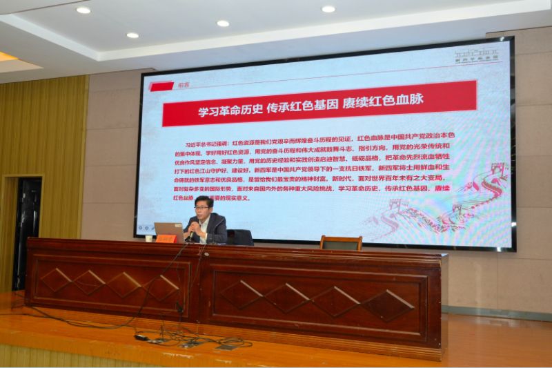 张树忠以习近平总书记对新四军的相关评价开场,通过详实的图片、生动历史故事和系列文史资料,从新四军诞生的历史背景、新四军的起源与组建发展、新四军的当代传承及意义三个方面,讲述了新四军浴血奋战的光辉历史。最后,他以学习新四军历史思考与启发结尾,结合当前国内外发展形势,引导青年老员工要学史明理、学史增信、学史崇德、学史力行,坚定信念跟党走,苦练本领强根基,同频共振谋发展,为大家上了一堂生动的思政课。