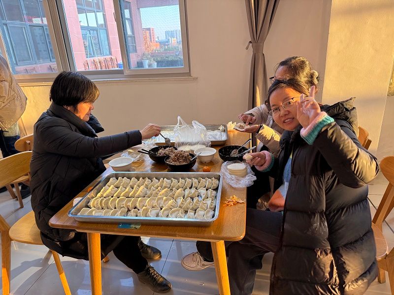 胡凌霞感谢退休老同志对于学院各项工作的关心和支持,陪同他们一起参观了学院陈列室,向老同志们表示诚挚的问候和新年的祝福。活动现场充满欢乐的氛围,工作人员提前准备好了饺皮和馅料,教职工们围坐在桌旁,一边交流包水饺的技巧,一边分享着各自的新年愿望和对来年的期待,现场洋溢着欢声笑语。随着一锅锅热气腾腾的水饺出锅,大家共同品尝了自己亲手包制的水饺,感受着劳动成果带来的满足和快乐,增进学院的集体凝聚力,为新的一年注入了活力和希望。